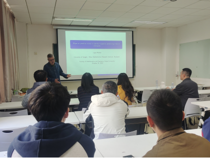 对于算子代数中保持算子的研究是泛函分析研究的一个热点问题。Molnar教授首先在C*-代数中引入多种数值型相对熵及非数值型相对熵,并介绍其理论背景及性质。在此基础上,Molnar教授指出在C*-代数正锥上保持这些相对熵的满射都可由Jordan *-同构导出。另外,对于非满的情况,Molnar教授介绍了其在矩阵代数中对于这一问题研究的最新进展。Molnar教授的报告由浅入深,讲解细致,开阔了参会师生的学术视野。会后,Molnar教授对于大家提出的问题给予了耐心细致的解答。