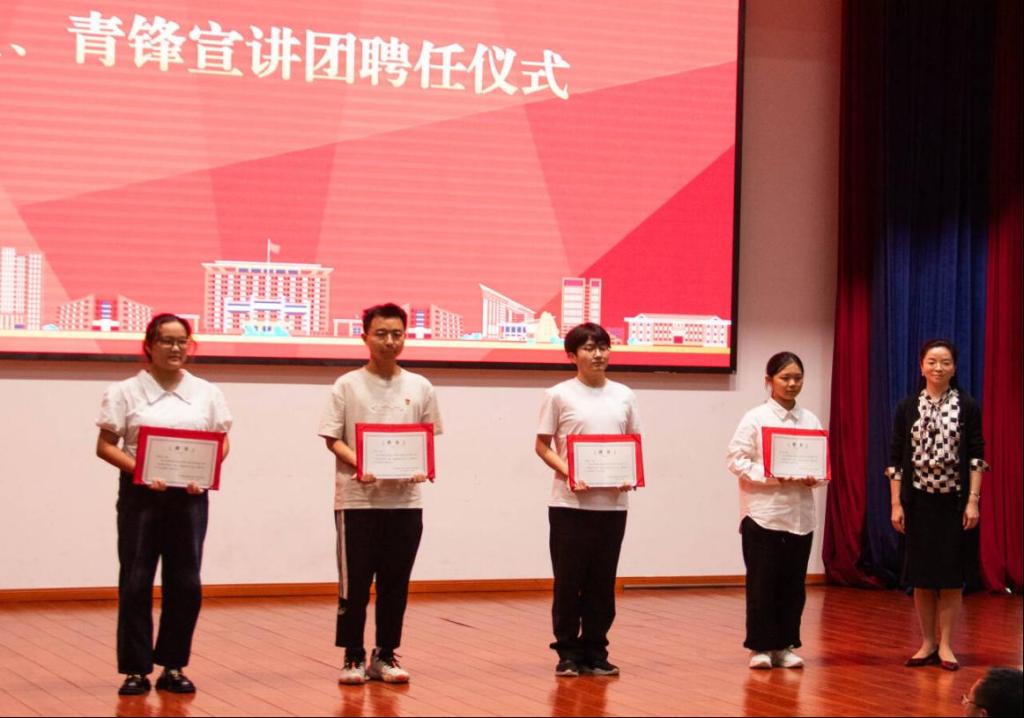 青锋宣讲团聘任仪式环节,青锋宣讲团成员代表与2025级新生班级开展了“蹲班驻点”结对。院党委书记黄江英为青锋宣讲团成员颁发聘书及“蹲班驻点”结对纪念卡,希望青锋宣讲团成员主动奉献、担当使命,发挥先锋模范作用,勉励新生向优秀典型看齐、向先进学习,并号召更多同学加入青锋宣讲团,传承精神,传播青春正能量。