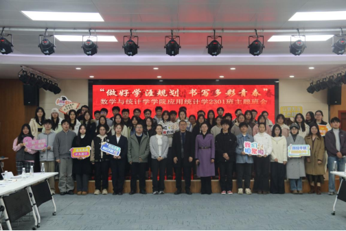 在认真听取师生发言后,曾祥勇对本次主题班会的组织形式与育人成效给予充分肯定。他结合个人学习成长经历,结合大三作为大学时光“黄金分割点”的特殊属性,以“学长+老师”的双重身份,对同学们提出殷切期盼,希望同学们要目标明确、行动坚定,面对数据分析中的复杂模型、编程实践里的反复调试,要始终保持“钻劲儿”“韧劲儿”,以“深耕细作”之姿筑牢专业根基。他强调,个人成长从来都与国家发展同频共振,统计学科的价值更在于回应时代需求、服务社会发展,同学们要把个人理想深度融入国家发展大局,在学习中主动思考“统计如何服务国家战略”“数据如何破解社会难题”,树立“国有所需、我有所为”的使命担当,以“家国情怀”之境拓宽成长格局。